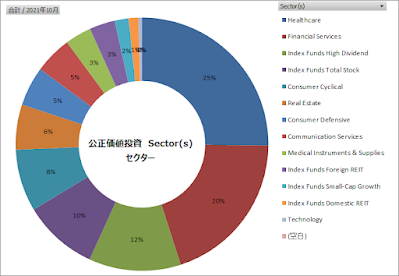 セクターと業種 2021年10月 –ヘルスケア事業が引き続きポートフォリオ内で大きなボリュームを占めています。コロナ禍後の傾向ですね。ヽ(^o^)丿