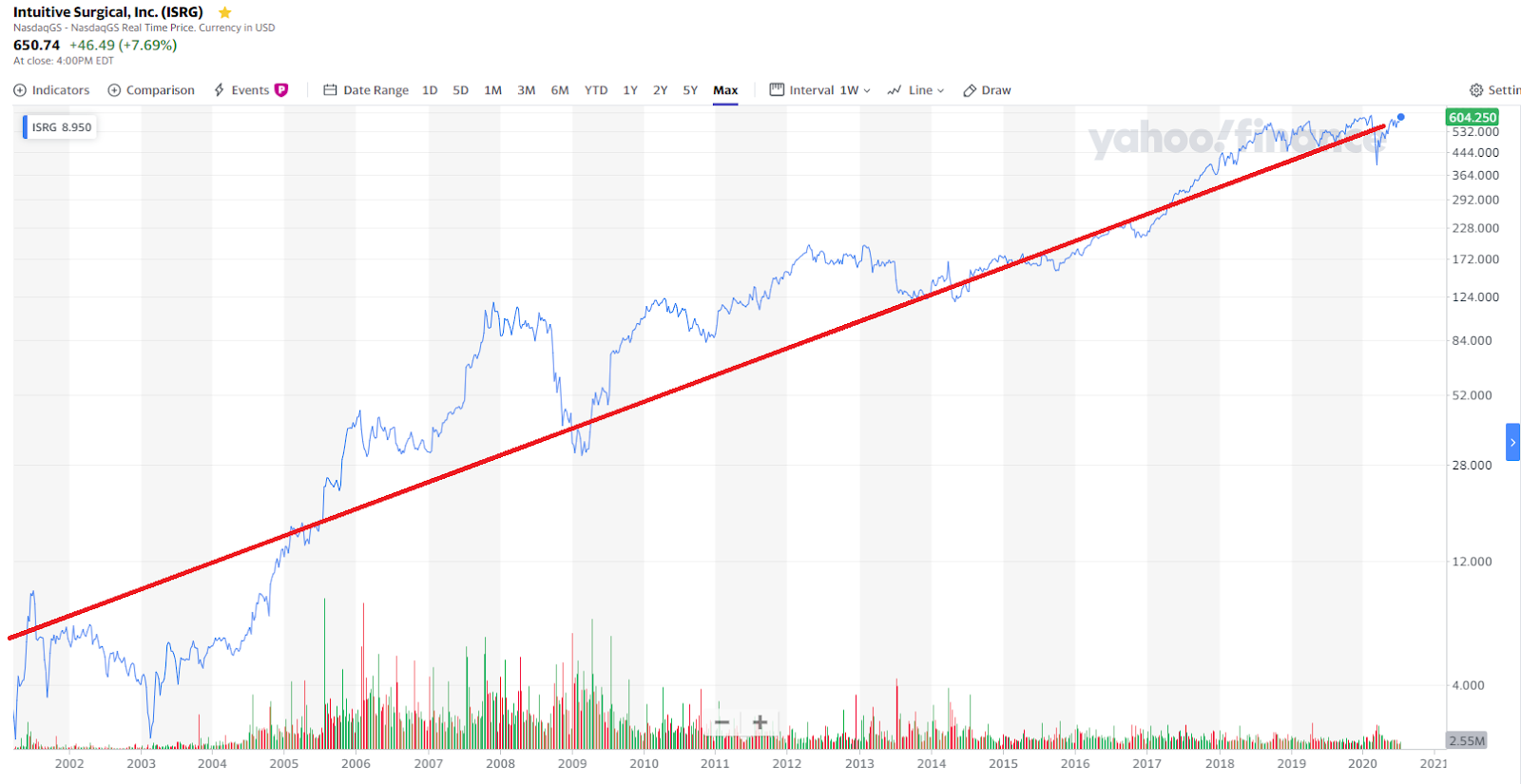 実際業績が良い会社で、私の持ち株でもあるインテュイティブサージカル。
