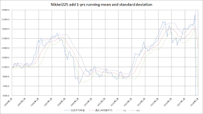 • S&P500、ジャカルタ総合指数、日経225とも過去1年の+1σより上回っています