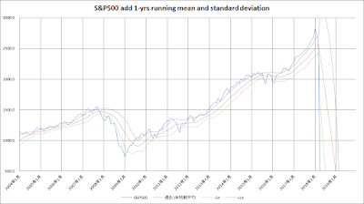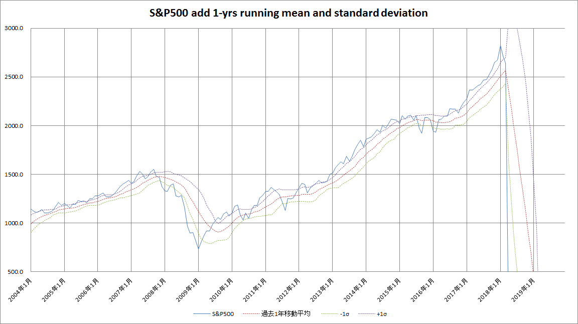なお、今回のグラフ及び作成手法は、ブログ記事「定点観測 2017年7月 –過去1年移動平均と標準偏差からみた株式市場の買い場」に依っています。