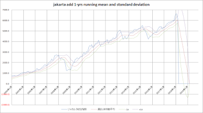 定点観測 2018年3月 –3月下旬も各国市場の株価調整。2月末の株価下落で、各国市場とも+1σを割ってきたが、3月はさらに下げて過去1年の平均値に近づきつつあります。S&P500、ジャカルタ総合指数、日経225の推移。
