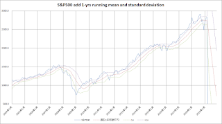 なお、今回のグラフ及び作成手法は、ブログ記事「定点観測 2017年7月 –過去1年移動平均と標準偏差からみた株式市場の買い場」に依っています。