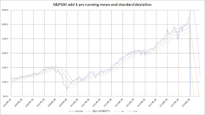 なお、今回のグラフ及び作成手法は、ブログ記事「定点観測 2017年7月 –過去1年移動平均と標準偏差からみた株式市場の買い場」に依っています。