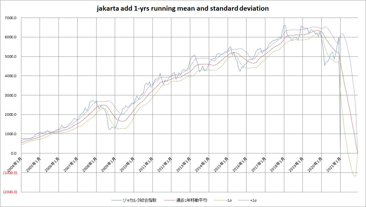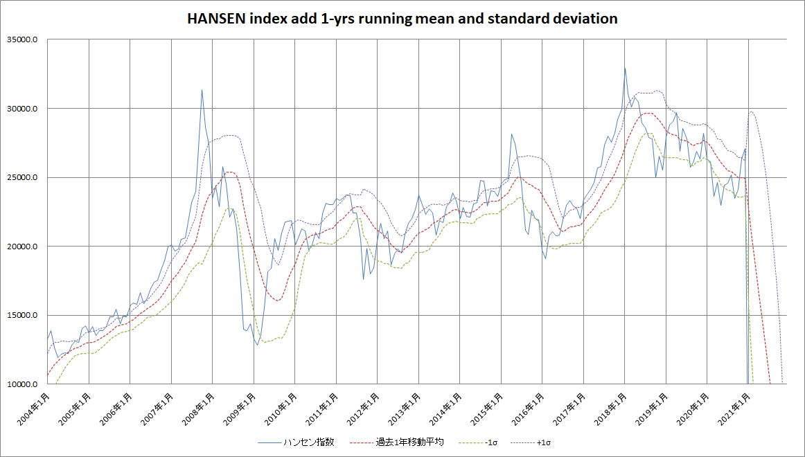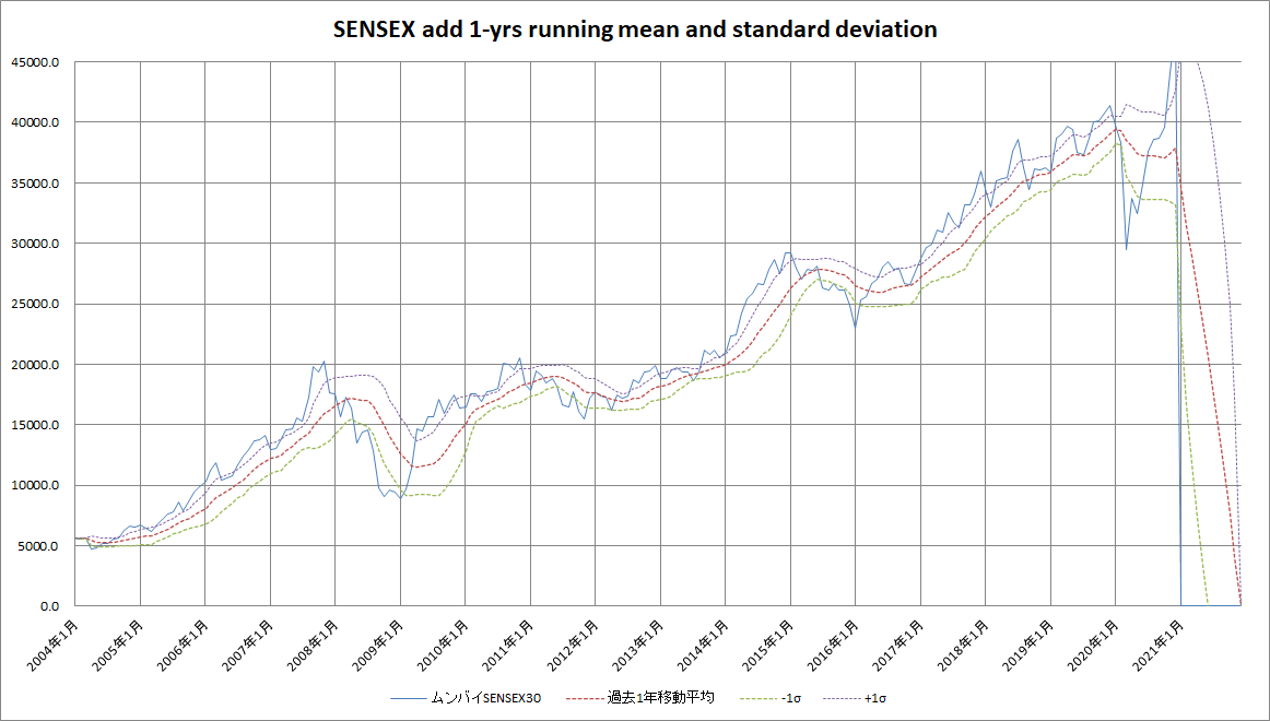 グラフを見て分かるように、かなりの高値圏です。1σを遥かに上回り、買えない状況です。