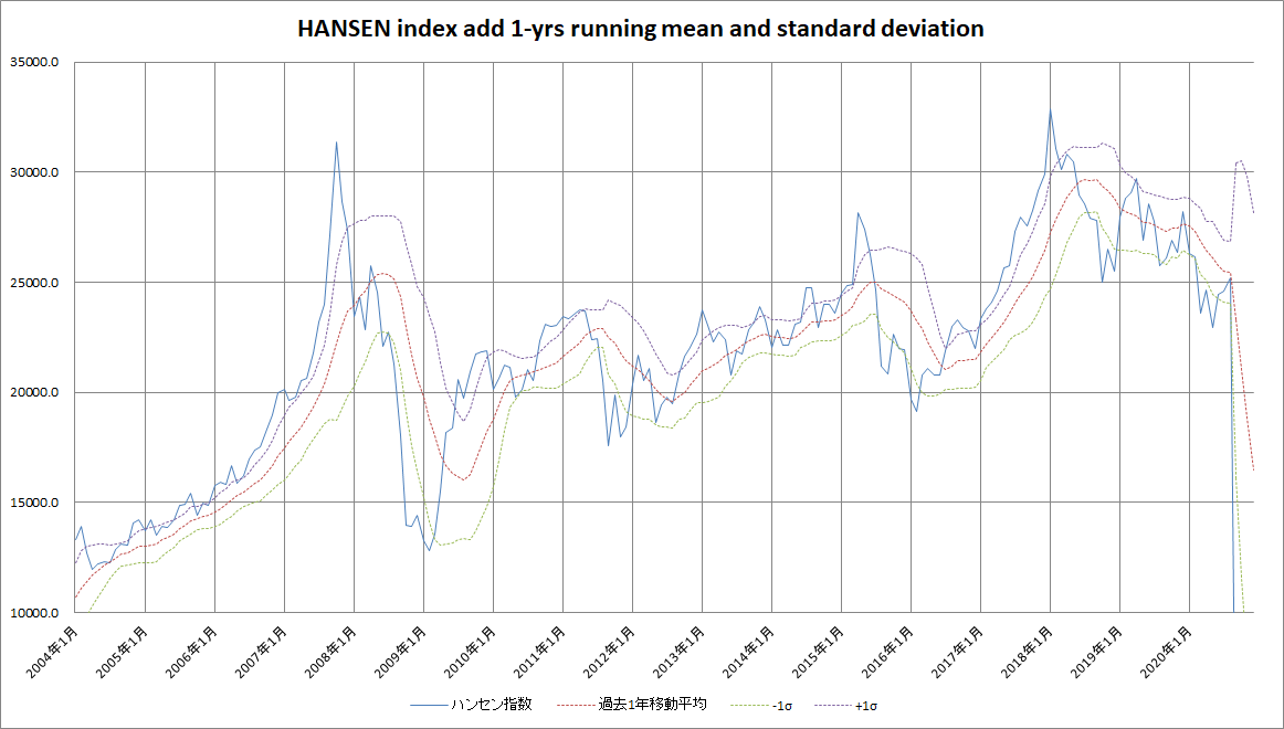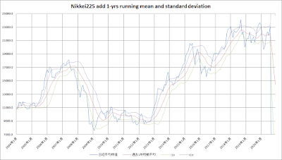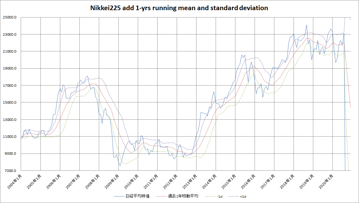 なお、今回のグラフ及び作成手法は、ブログ記事「定点観測 2017年7月 –過去1年移動平均と標準偏差からみた株式市場の買い場」に依っています。ワタクシゴトですが、2018年5月に本を出版しました。