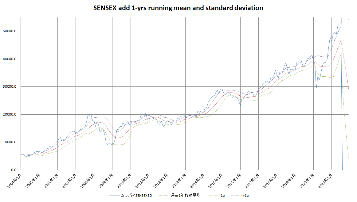 グラフを見ても、コロナショックから一貫してあげていますね。過去1年の標準偏差から見ても大幅に逸脱していますね。ちょっと買いづらいところです。