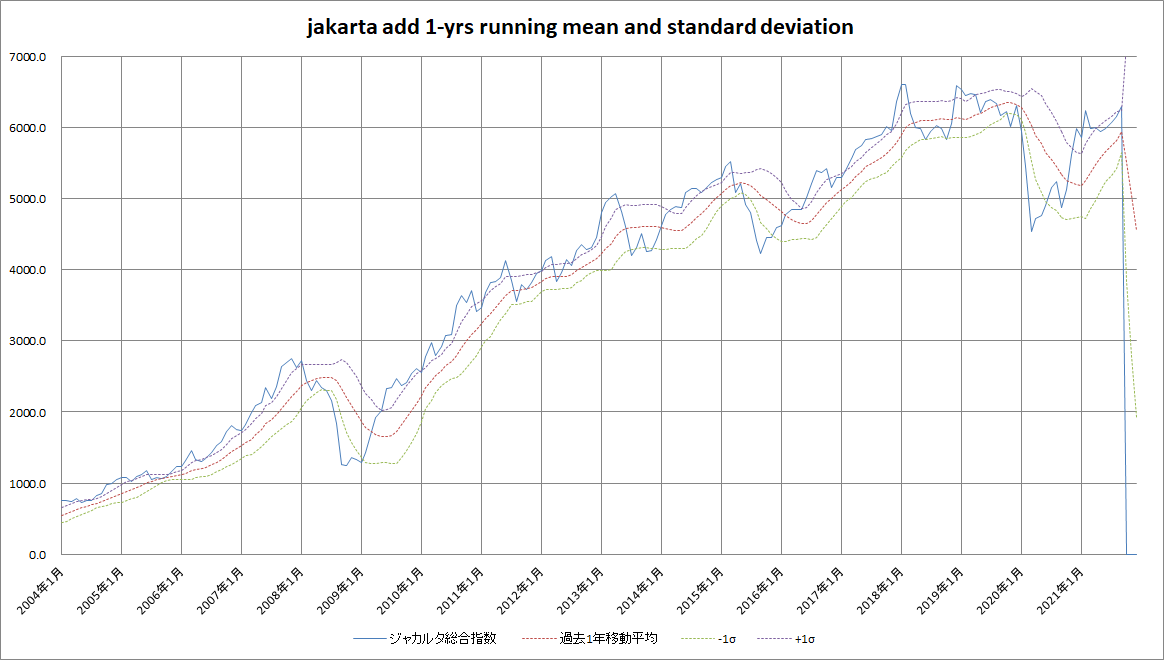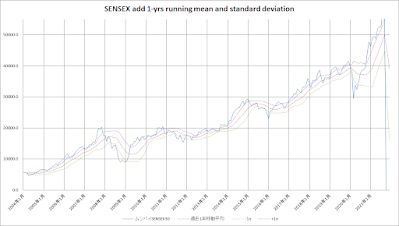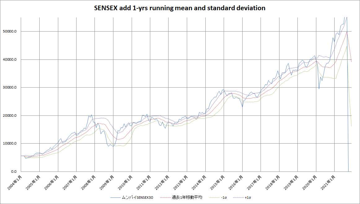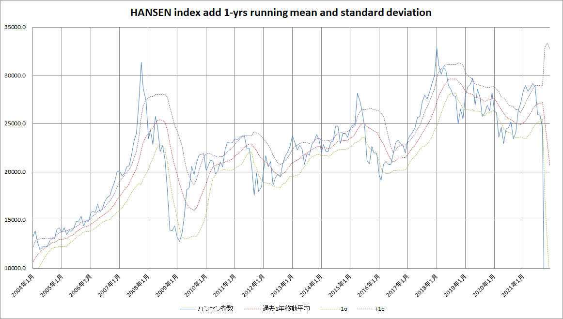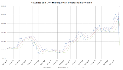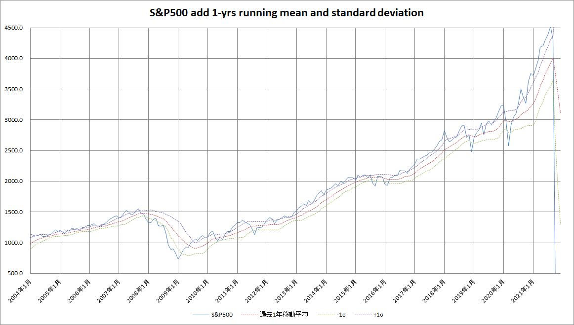 なお、今回のグラフ及び作成手法は、ブログ記事「定点観測 2017年7月 –過去1年移動平均と標準偏差からみた株式市場の買い場」に依っています。ワタクシゴトですが、2018年5月に本を出版しました。