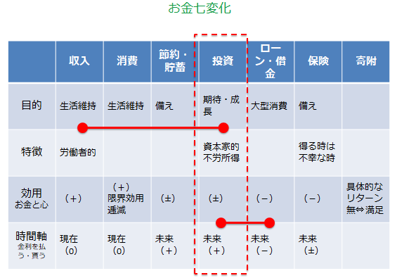 自分自身、「お金7变化」ということで、画像のようにお金の使い方の7種類を分類しています。