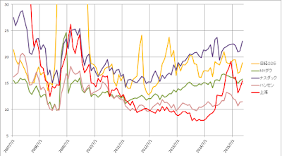 株式市場のPER –現在の市場は割安か?日経225、NYダウ、ナスダック指数、ハンセン指数、上海総合指数