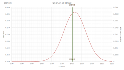 ちなみにこの方法は、当ブログで進めている価値に対する価格の安さで投資をしていくアプローチではなく、どちらかと言うとチャートを元にしたテクニカル投資のようなものです。手法は、過去1年のデータから正規分布の確率密度関数を想定して、その重みを付けて投資金額を自動決定するものです。