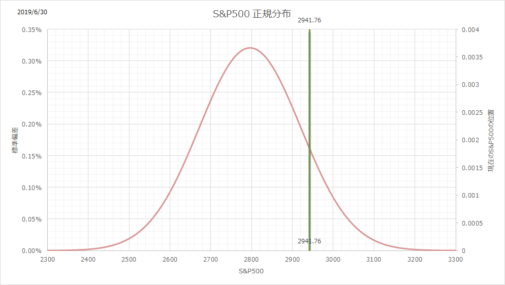 ちなみにこの方法は、当ブログで進めている価値に対する価格の安さで投資をしていくアプローチではなく、どちらかと言うとチャートを元にしたテクニカル投資のようなものです。手法は、過去1年のデータから正規分布の確率密度関数を想定して、その重みを付けて投資金額を自動決定するものです。