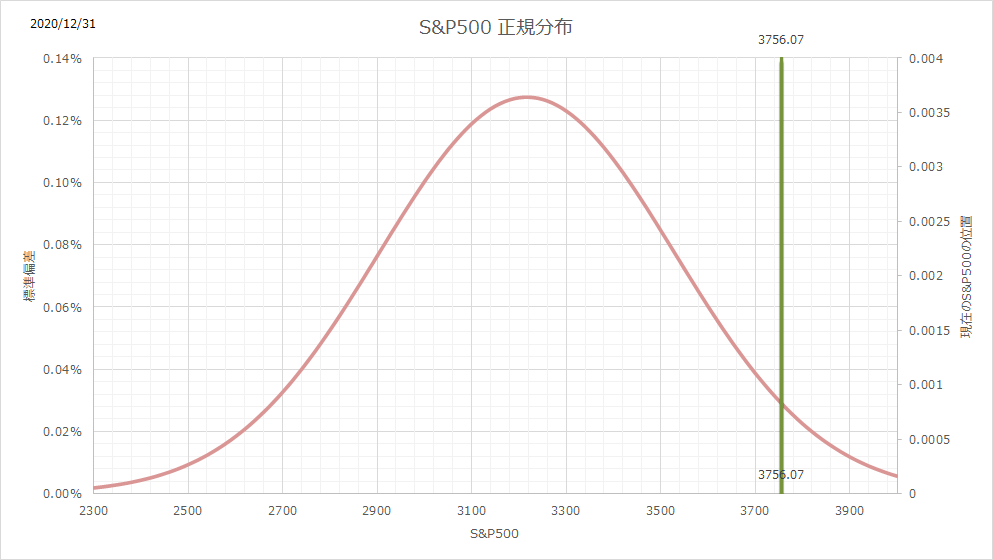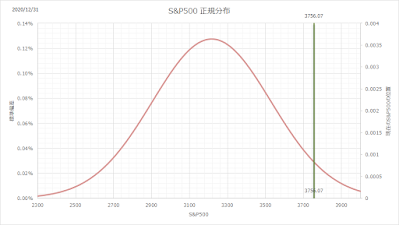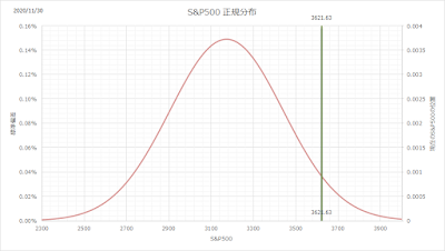 ちなみにこの方法は、当ブログで進めている価値に対する価格の安さで投資をしていくアプローチではなく、どちらかと言うとチャートを元にしたテクニカル投資のようなものです。手法は、過去1年のデータから正規分布の確率密度関数を想定して、その重みを付けて投資金額を自動決定するものです。