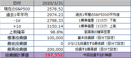 積立投資 2020年3月 –今月の計算買付額は178,042円。前月118,826円から大きく増加。久々に計算買付金額が大きくなりましたね。