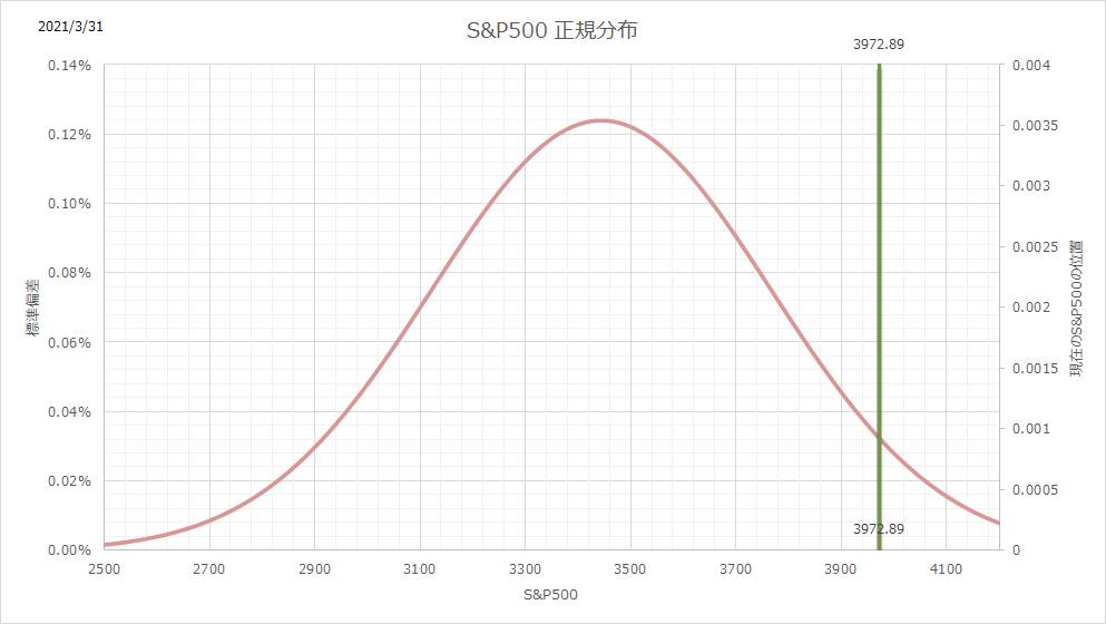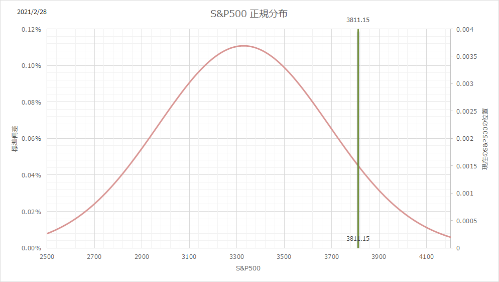 ちなみにこの方法は、当ブログで進めている価値に対する価格の安さで投資をしていくアプローチではなく、どちらかと言うとチャートを元にしたテクニカル投資のようなものです。手法は、過去1年のデータから正規分布の確率密度関数を想定して、その重みを付けて投資金額を自動決定するものです。