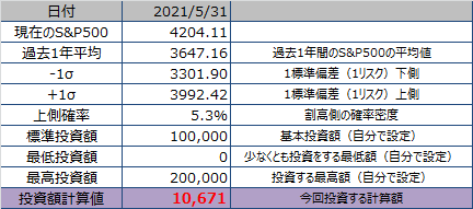 「積立投資向けの毎月投資額自動確定の仕組みを作ってみた –確率密度関数の上側確率の重みで金額を決めるツールです」