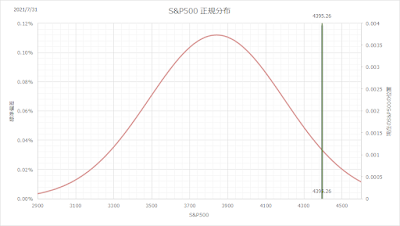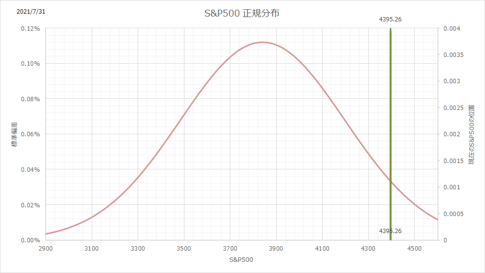 S&Pが上げたたため、S&P自体(緑色の縦棒)も右に行きましたが、それ以上に山事態が右に寄りましたので、投資金額が上がりました。