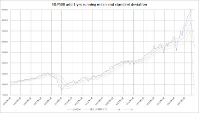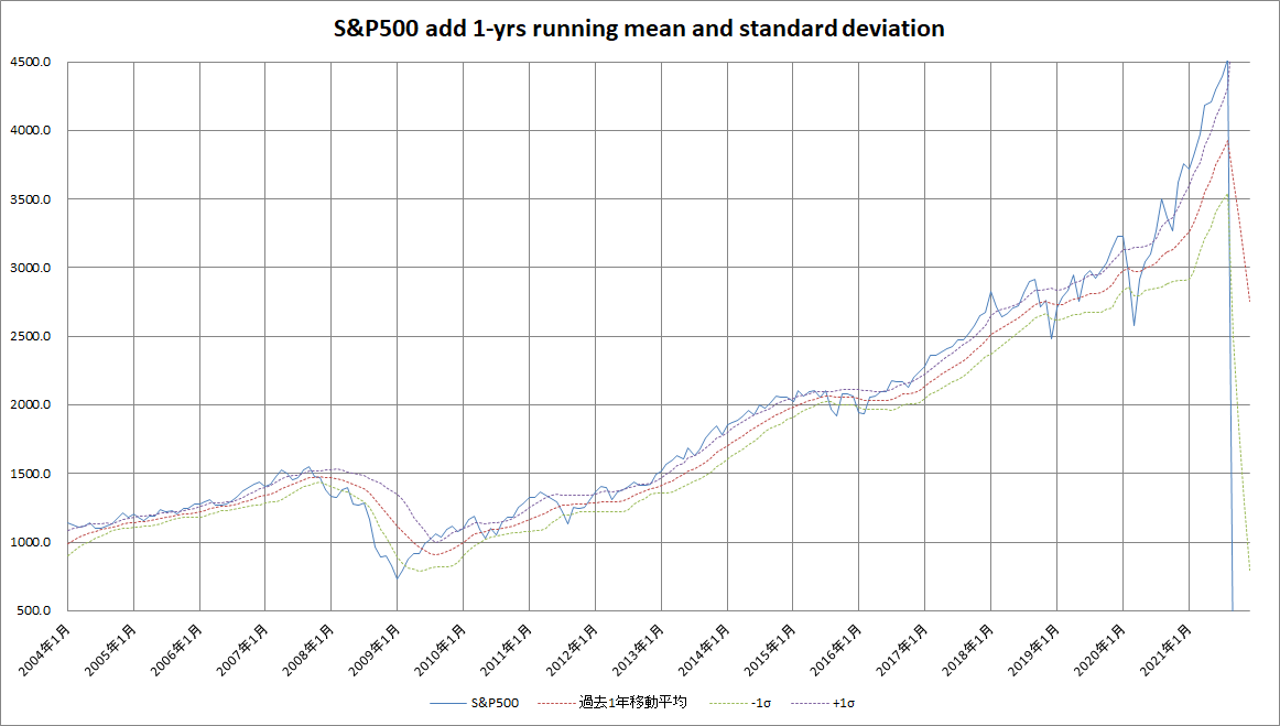今回の正規分布を利用した金額計算ですと、かなりグラフの右側に現在のS&P500の値がよってきていますので、かなり少額になります。
