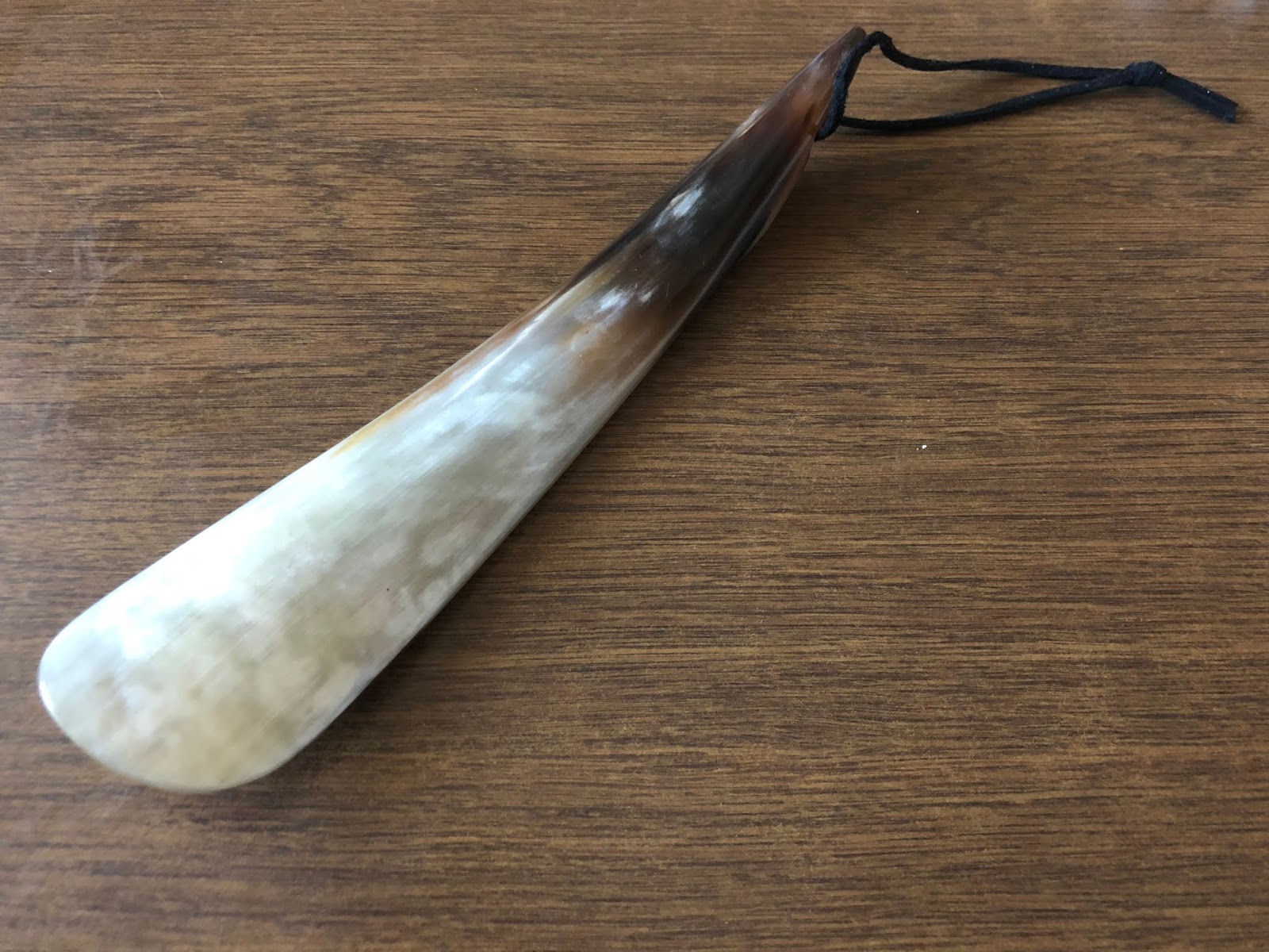 いろいろ調べて行き着いた品物は、アビーホーン社の靴べら。英国製の水牛の角を加工する靴べらです。1749年から続いている会社なんですね!買って今頃びっくりしています。