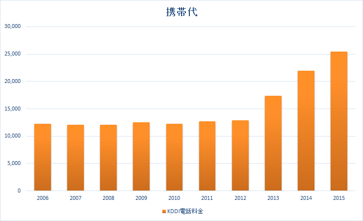 • 携帯代は、12,200円→25,500円で、13,300円アップ