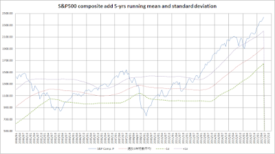 米国株の買い時を計る –5年移動平均の上下1標準偏差(±1σ)の値を使ってみよう