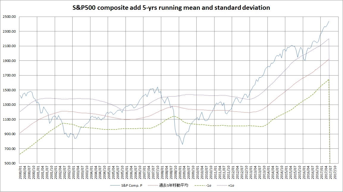 米国株の買い時を計る –5年移動平均の上下1標準偏差(±1σ)の値を使ってみよう