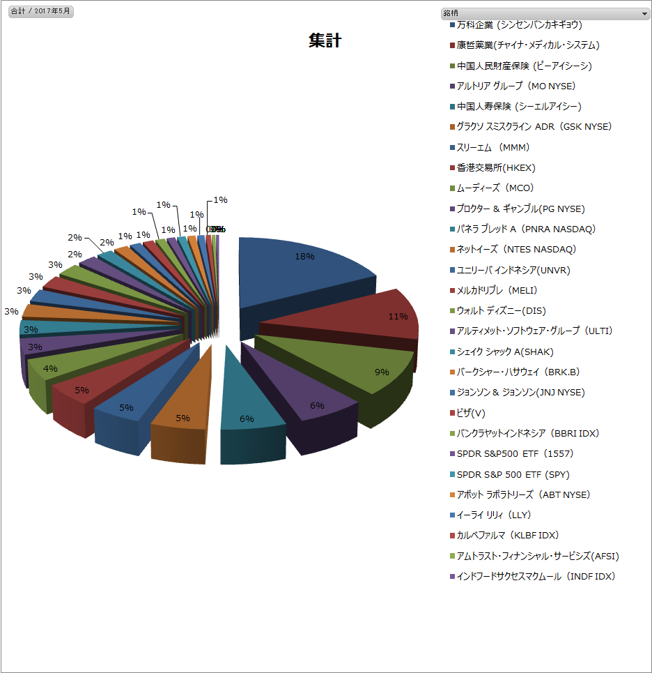 組入銘柄 2017年5月 –売買なし。今年に入って4ヶ月なにも売買がありません。暇な投資ですね。^_^