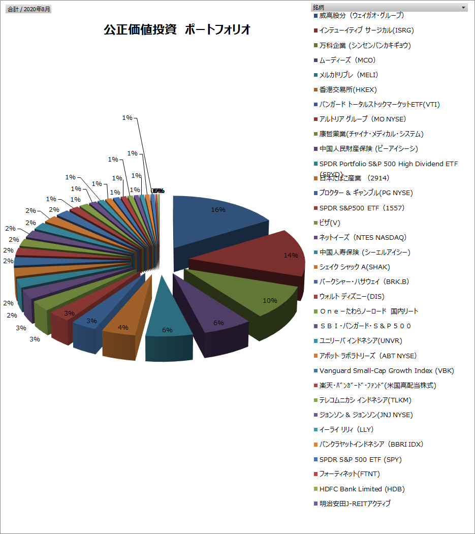組入銘柄 2020年8月 –米国市場の戻しがすごすぎて対応できません。こんな時は買いを控えたいと思います。ヽ(^o^)丿
