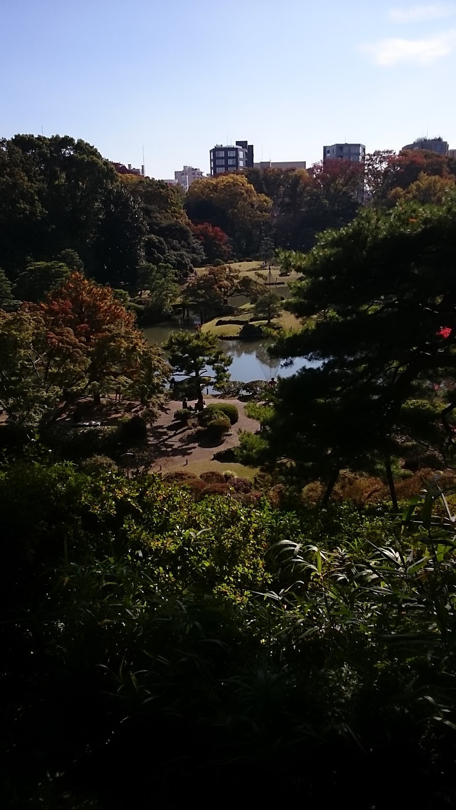 都会の中のぽっかり浮いた庭園であることが実感できます。周りはビルが多いです。