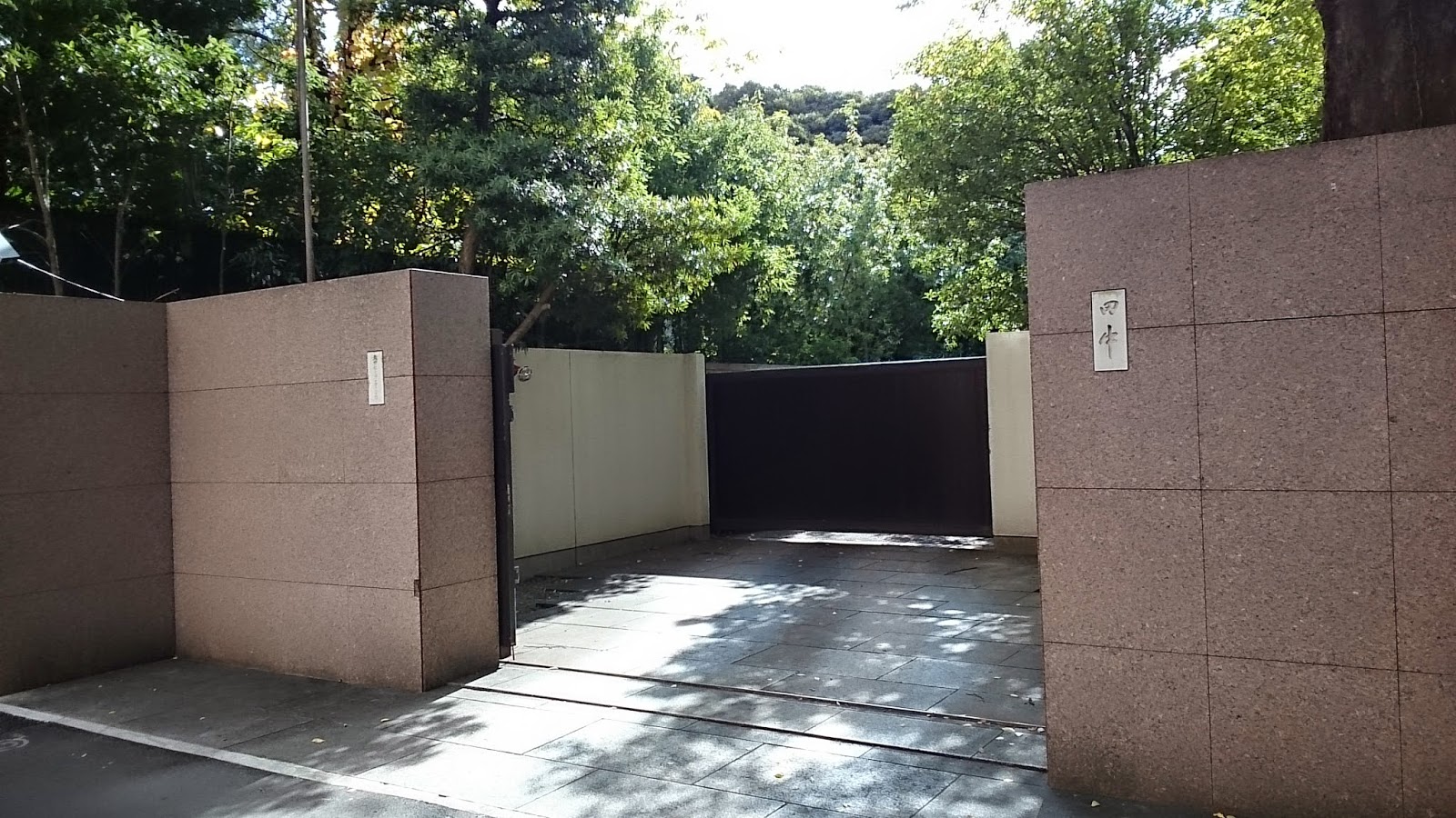 学習院大学の正門を右に見ながらそのまま目白通りを進んでいき、さらに明治通りも越えて行くと、右側に現れるのが、田中邸です。お隣は田中真紀子さんが相続税を物納したことで有名な目白台運動公園となります。この公園の一部が田中邸だったということで、昔の田中邸の大きさが分かります。