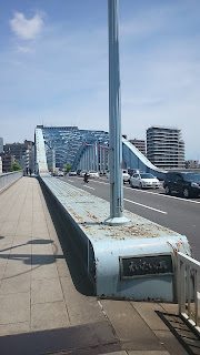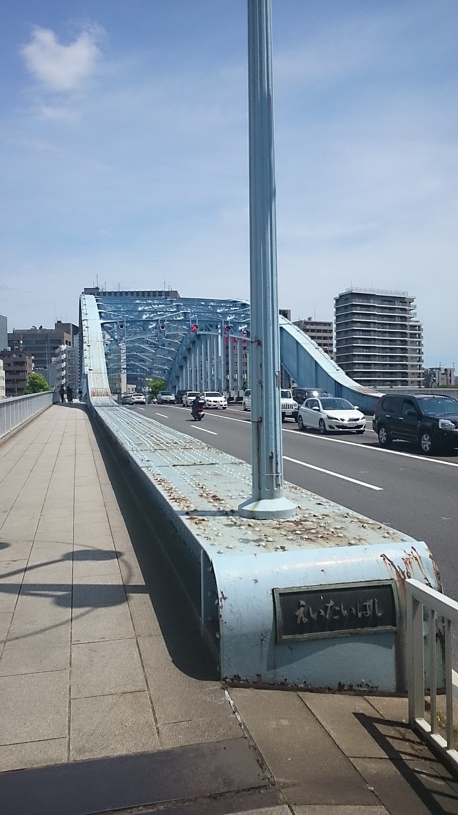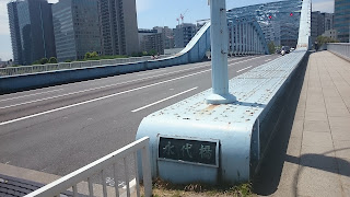豊海橋の向こうに見える永代橋。隅田川を渡ります。