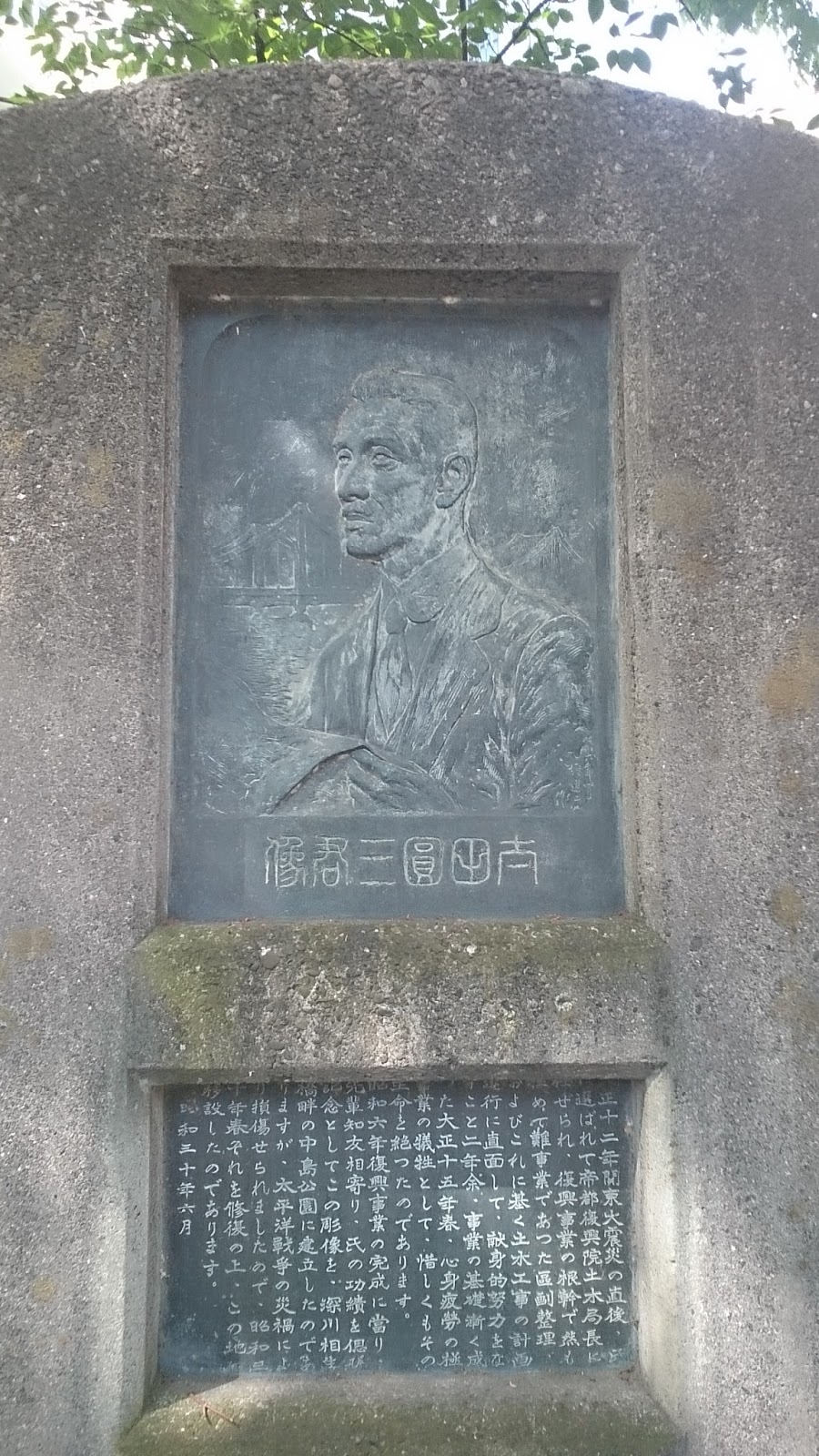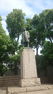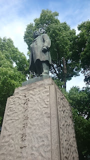 立派な銅像です。日本橋川の対岸で日本銀行を見つめています。