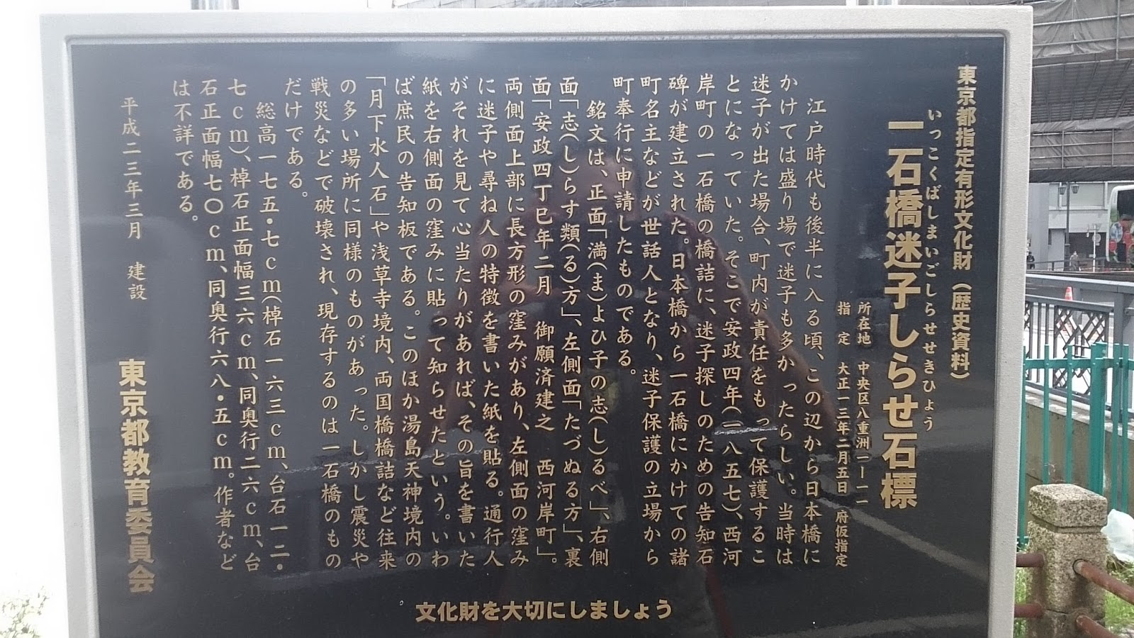 昔この辺は栄えていて、迷子が多かったために伝言板があったという、一石橋。