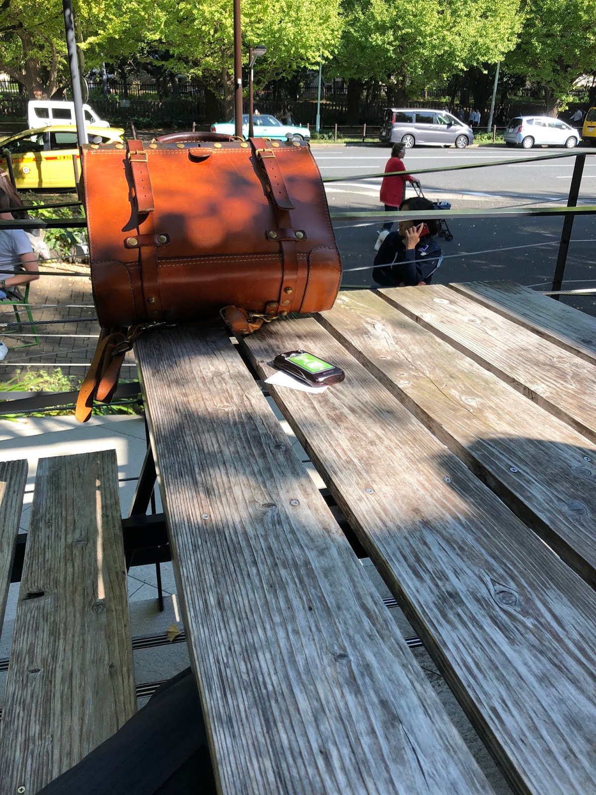 なお、写真は、6年ほど前に買ったHERZのカバンと、シェイクシャックの呼び出しベル。HERZのカバンも長く使ってきたら、いい味を出してきました。秋晴れの太陽を受けています。