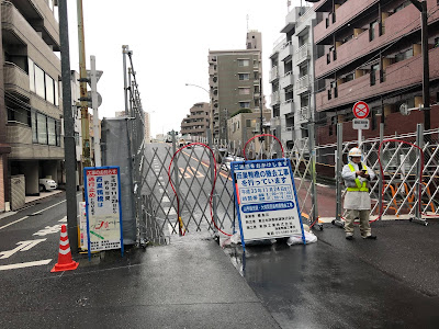 街角経済37 西巣鴨橋 –ついに工事が始まりました。歩道が思いっきり車道に接していたりしたので、少しの期間の我慢ですね。