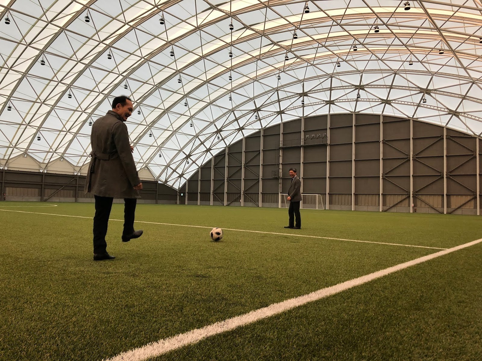 2018年9月8日にオープンとなった新しい全天候型練習場。ラグビーもできる大きさ、天井の高さになっているとのことです。