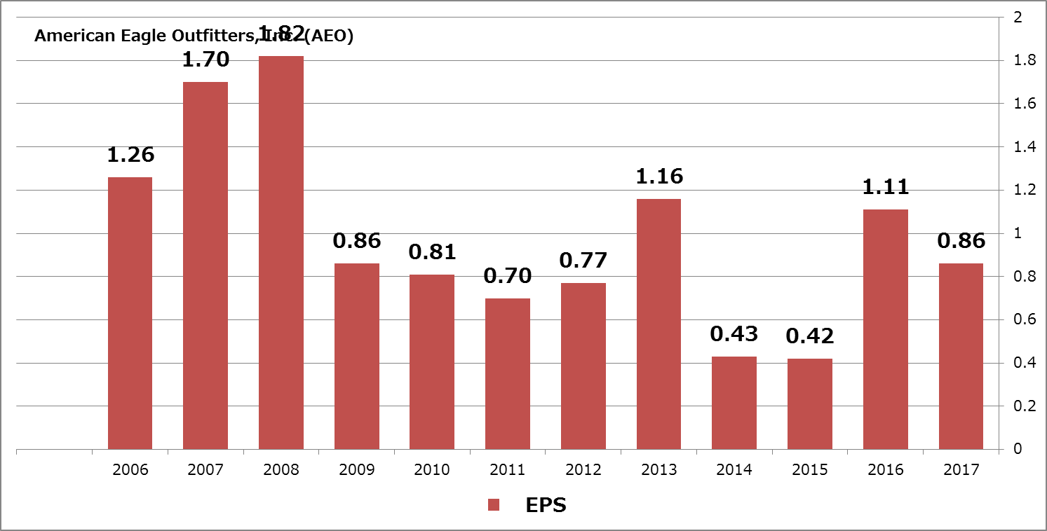連続になりますが、アメリカンイーグルアウトフィッターズ、American Eagle Outfitters, Inc. (AEO)の財務内容の話になります。