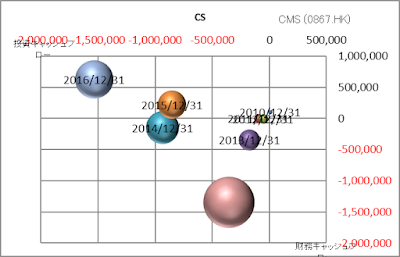 本業が成長していますので、本業を表している営業キャッシュの玉の大きさがどんどん大きくなっているのが分かると思います。なお、2017期は財務キャッシュフローが大きくマイナスとしていますので、財務体質の改善をしていると思われます。