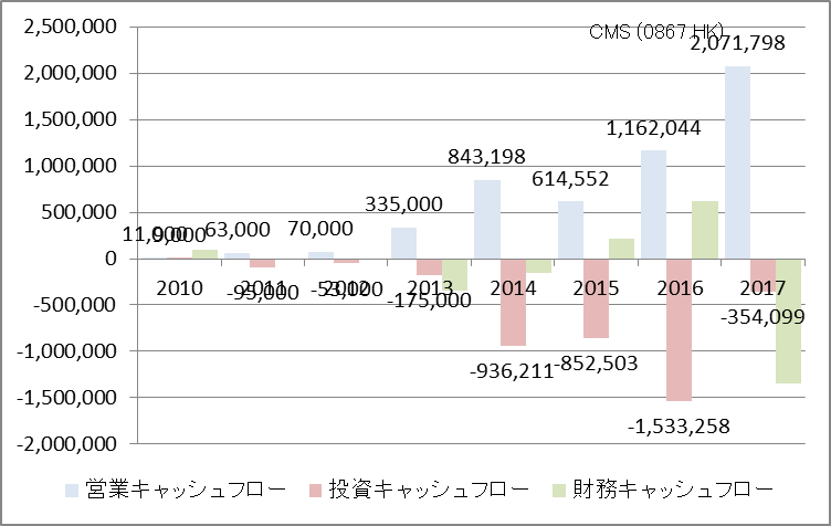 この会社は、常に投資をしている(投資キャッシュフローが常にマイナス)ことと、営業キャッシュフローの成長性が特徴です。