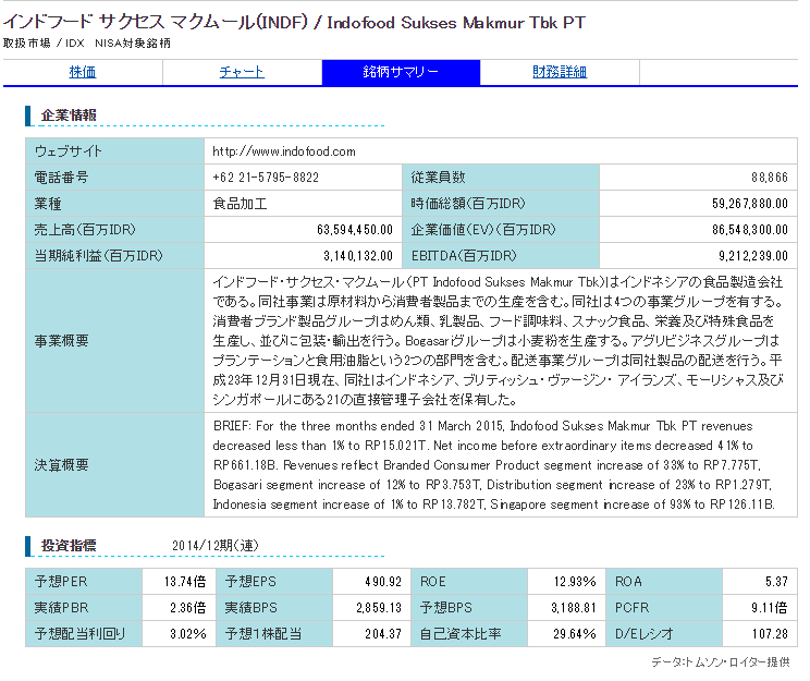 Indofood Sukses Makmur Tbk. (INDF.JK) の2014年本決算の配当が出ました。