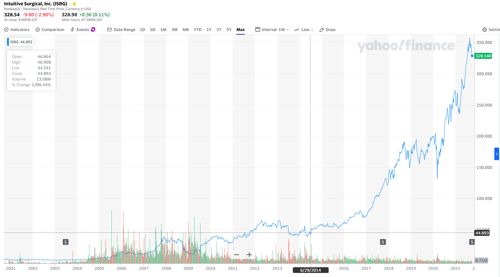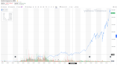 インテュイティブサージカルのここ20年の株価の推移です。