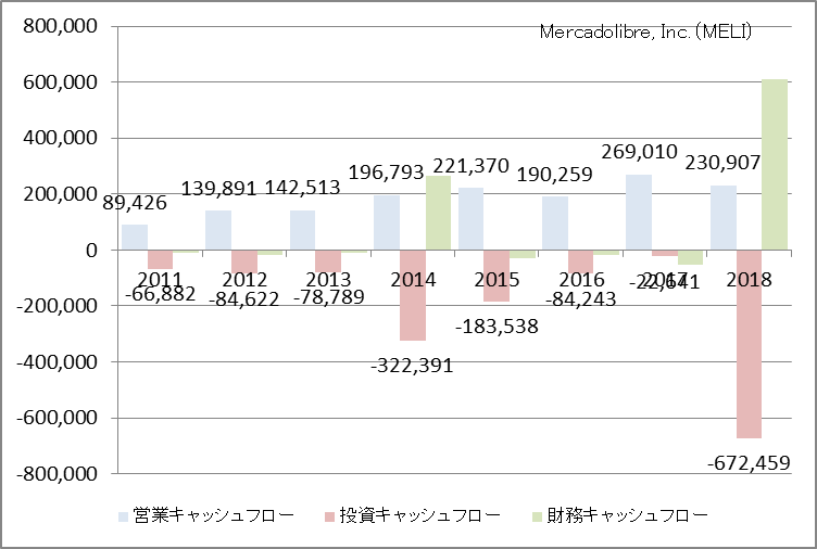 メルカドリブレの3つのキャッシュフローについて、時系列的に見ていきます。
