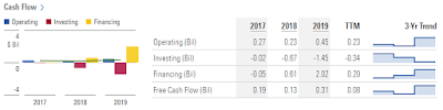 - 2018,2019と投資キャッシュフローがキャッシュアウト、財務キャッシュフローがキャッシュイン