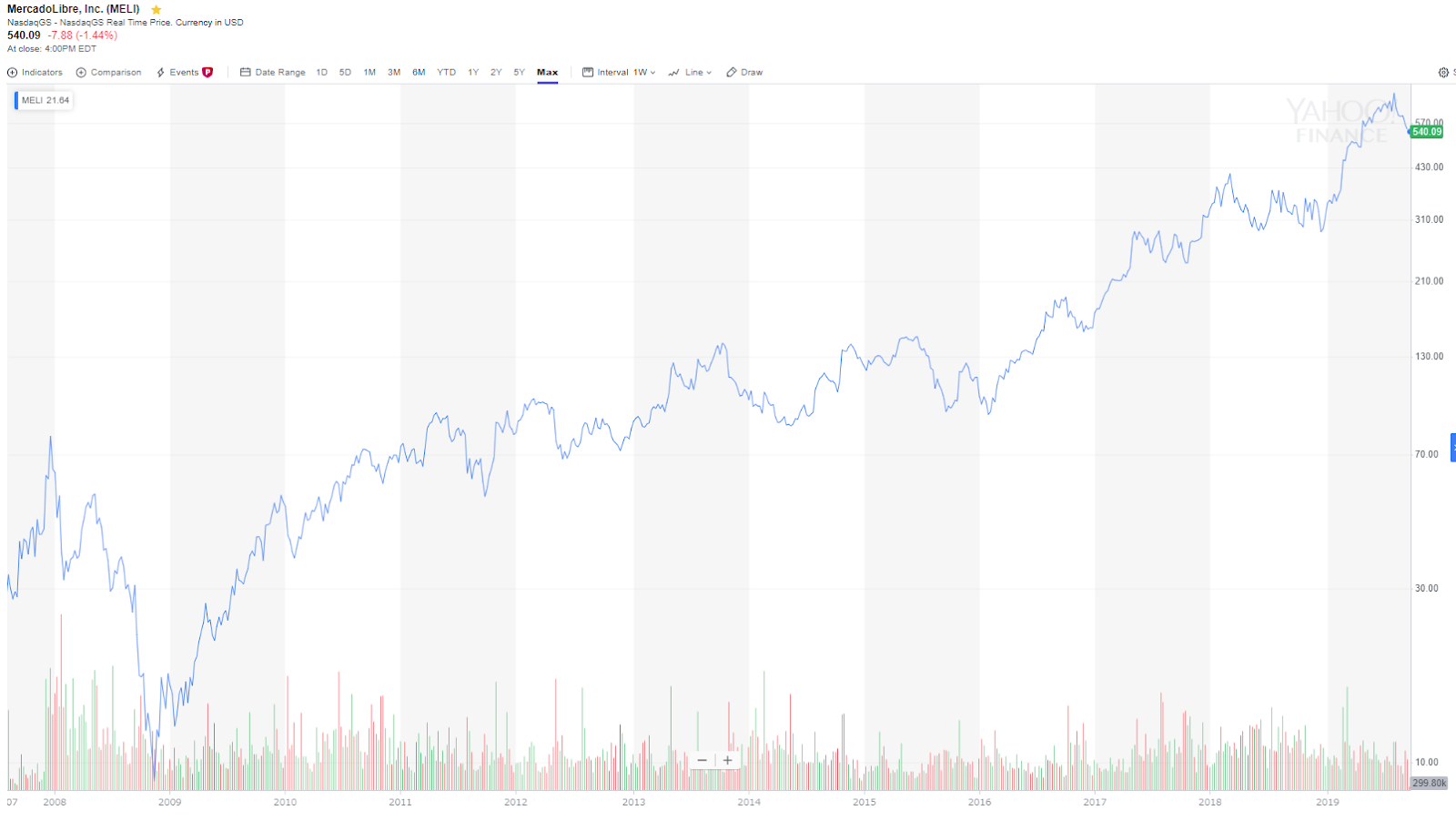 メルカドリブレという、アルゼンチンのブエノスアイレスに本拠地を置く企業があります。eコマースの会社で、アルゼンチンを中心に南米全土にシェアを広げている企業です。