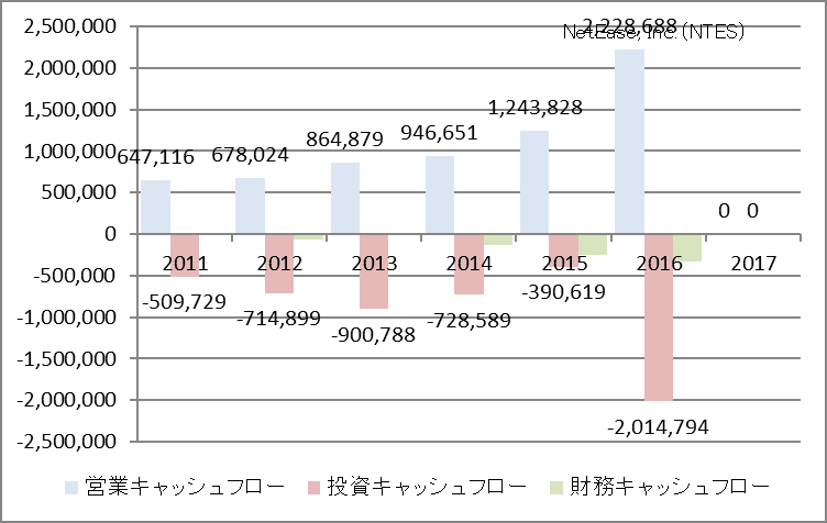 キャッシュフローが特徴的です。2016年度の投資が傑出していますね。新しい事業への投資となります。