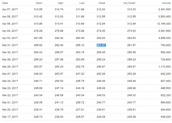 ちなみに、4月7日の終値が312.00ドルとなっています。