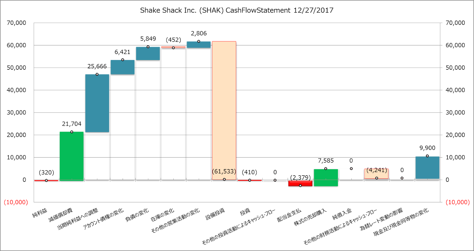 シェイクシャックの2017期の決算を見ています、今回は、キャッシュフローを見ます。