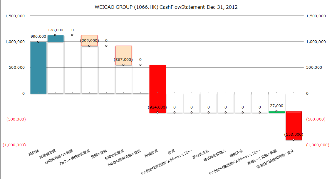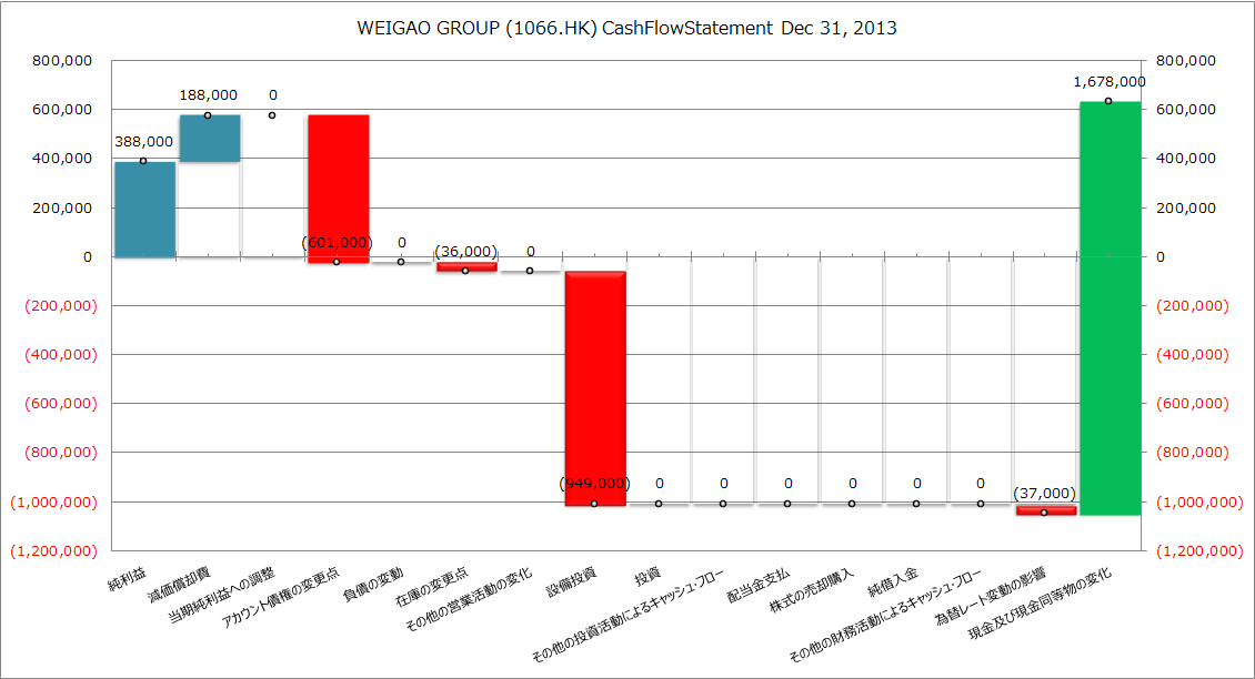 ちなみに、米国株と同様にヤフーファイナンス米国のデータで、キャッシュ・フロー計算書のウォーターフォールチャートを作ってみました。が、中国株の情報は少なくていまいち分析ができるような資料にならないですね。