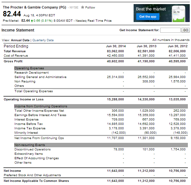 http://finance.yahoo.com/q/is?s=PG+Income+Statement&annual
