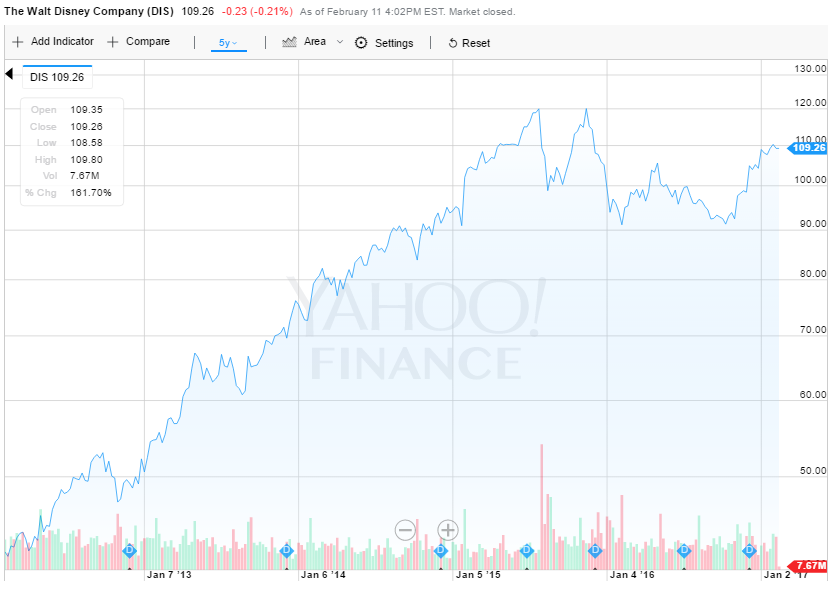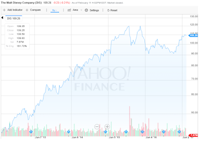ちょっと前に、The Walt Disney Companyの配当が出ました。現時点の配当利回りは、1.56%です。