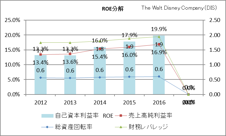 ちょっとグラフのラベルが重なっているので見づらいですが、売上高純利益率は13.3%→19.9%で大きく成長しています。総資産回転率はあまり変わらず。財務レバレッジも1.7倍→1.9倍とそれほど大きな変化はありません。